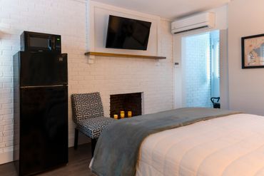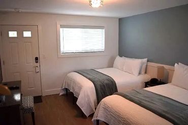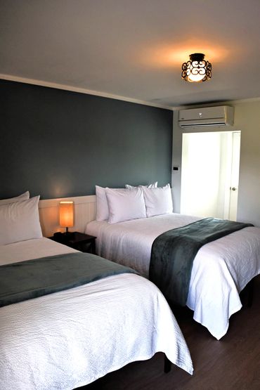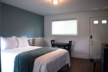 Traditional Rooms have either a queen bed with a side table and chairs, or two double beds. TV, refrigerator, coffee maker and microwave in each room. Most open out on to our large green space with easy access to our pool or for a walk to Albee Beach. All rooms have their own entrance with electronic keyless entry.